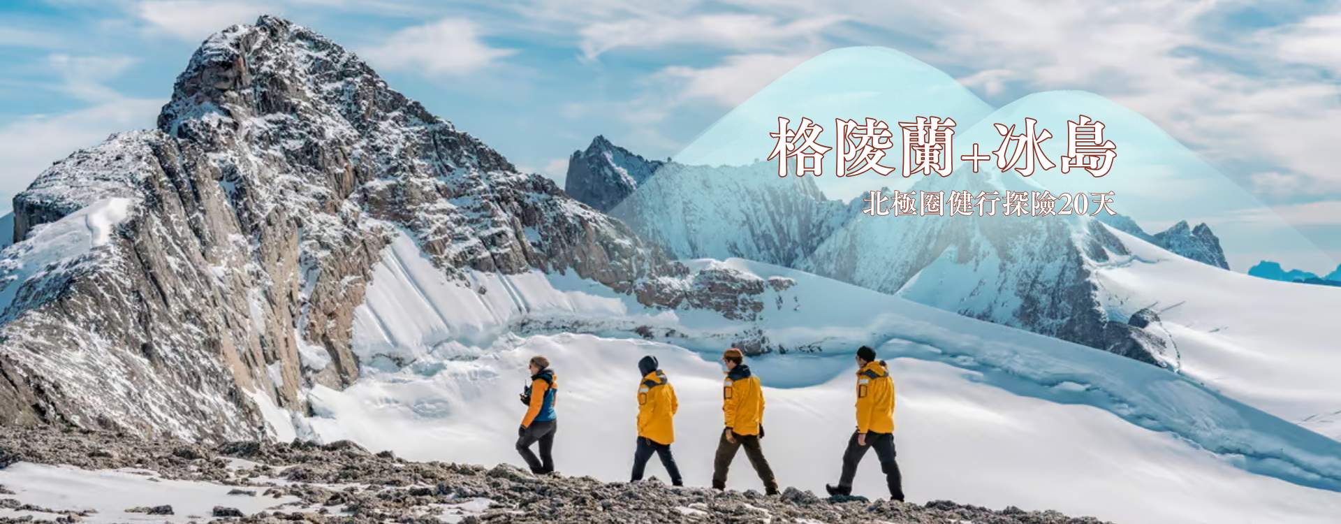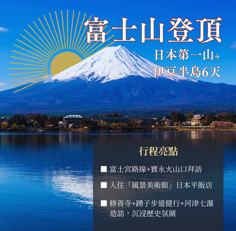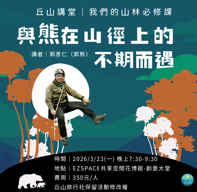 立即填寫 立即報名 行 程 亮 點■ 穿越哈薩克查林峽谷赭紅岩層 ■ 吉爾吉斯阿拉阿恰國家公園一探冰川氣息,夜宿氈房仰望銀河星空 ■ 入住烏茲別克希瓦古城,感受藍色夢境 活動詳情 行 程 亮 點■ 杜鵑花季登頂韓國第一高峰漢拏山 ■ 走訪數個小火山、世界遺產與深入當地的徒步旅行「偶來小徑」 ■ 入住 2 晚濟州君悅酒店,欣賞漢拏山的壯闊遼美 活動詳情 行 程 亮 點■ 富士宮路線+寶永火山口拜訪 ■ 入住「風景美術館」日本平飯店 ■ 修善寺+踴子步道健行+河津七瀑造訪,沉浸歷史氛圍 活動詳情 行 程 亮 點■ 搭乘豪華探險船前進北極圈 ■ 直升機登陸格陵蘭、獨木舟、冰上露營等豐富戶外活動 ■ 冰島中央高地登山、冰川健行,體驗冰火之地壯闊美景 活動詳情 精選活動各國經典行程 難度說明:★ : 大眾行程,適合所有人★★: 短程健行,每日最多約6小時★★★: 長程健行,每日最多約8小時★★★★: 岩稜或長程高山健行,適合有類似經驗者★★★★★: 高海拔或冬季攀登,適合有豐富經驗者- Featured Tours - 日本歐洲美洲·紐澳其他地區台灣日本 【靜心之旅】日本熊野古道-中邊路完全踏破 7天 ★★★★★ Rated 3 out of 5 【甲州名山】日本八岳縱走 5天 ★★★★★ Rated 3 out of 5 【溪流新綠】日本青森奧入瀨初夏健行 6天 ★★★★★ Rated 1.5 out of 5 【深度東北】日本宮城偶來步道+栗駒山健行 5天 ★★★★★ Rated 2 out of 5 【神之地毯】日本宮城偶來步道+栗駒山紅葉健行 5天 ★★★★★ Rated 2 out of 5 【綠原花海】日本尾瀨濕原初夏健行5天 ★★★★★ Rated 1.5 out of 5 【信仰之道】日本熊野古道深度健行 7天 ★★★★★ Rated 2.5 out of 5 【世界遺產】日本熊野古道健行 5天 ★★★★★ Rated 2 out of 5 【黑部秋色】日本白馬立山紅葉健行 6天 ★★★★★ Rated 2 out of 5 【最美溪流】日本青森奧入瀨紅葉健行 6天 ★★★★★ Rated 1.5 out of 5 【白神山地】日本東北-世界遺產紅葉健行 7天 ★★★★★ Rated 2 out of 5 【空海巡禮】日本四國遍路+百名山深度之旅 7天 ★★★★★ Rated 2.5 out of 5 MORE 歐洲 【極光乍現】北極格陵蘭直升機探險+冰島健行 20天 ★★★★★ Rated 2 out of 5 【東歐探索】保加利亞+羅馬尼亞健行文化之旅 15天 ★★★★★ Rated 2.5 out of 5 【深度北義】義大利多洛米堤山區健行 15天 ★★★★★ Rated 3 out of 5 【北歐風情】挪威三大奇岩+峽灣健行 14天 ★★★★★ Rated 3.5 out of 5 【最美島嶼】挪威羅浮敦群島+瑞典國王小徑 14天 ★★★★★ Rated 3 out of 5 【心靈之旅】西班牙聖雅各朝聖之路 15天 ★★★★★ Rated 2 out of 5 【百花繚亂】瑞士法國義大利-阿爾卑斯三大名峰健行 14天 ★★★★★ Rated 2.5 out of 5 【史詩山徑】環白朗峰(TMB)法義瑞三國健行 13天 ★★★★★ Rated 3 out of 5 【海角歐陸】葡萄牙健行+聖雅各朝聖之路 15天 ★★★★★ Rated 2.5 out of 5 【北義秘境】義大利多洛米堤-托斯卡尼-五漁村健行 14天 ★★★★★ Rated 2.5 out of 5 【遺世夢境】英國蘇格蘭西高地+斯凱島健行 14天 ★★★★★ Rated 2.5 out of 5 【輕鬆TMB】半環白朗峰-法義瑞三國健行 12天 ★★★★★ Rated 2.5 out of 5 MORE 美洲·紐澳 【馬丘比丘】秘魯印加古道健行深度之旅 18天 ★★★★★ Rated 3 out of 5 【南美三國】智利∙阿根廷∙玻利維亞-巴塔哥尼亞+W Trek 健行+天空之鏡 22天 ★★★★★ Rated 3 out of 5 【南美屋脊】哥倫比亞秘魯-安地斯山健行之旅 21天 ★★★★★ Rated 3.5 out of 5 【世界盡頭】智利阿根廷-巴塔哥尼亞-百內健行 20天 ★★★★★ Rated 2.5 out of 5 【優勝美地】美西國家公園秘境健行 15天 ★★★★★ Rated 2.5 out of 5 【壯麗秋色】加拿大洛磯山脈健行 14天 ★★★★★ Rated 2.5 out of 5 【冰川飛瀑】紐西蘭米佛步道+庫克山健行之旅12天 ★★★★★ Rated 2.5 out of 5 【南美最高】阿空加瓜峰登頂 22天 ★★★★★ Rated 4.5 out of 5 【世界中心】澳洲北領地豪華野營健行+烏魯魯巨岩 12天 ★★★★★ Rated 2.5 out of 5 MORE 其他地區 【韓國最高】濟州島漢拏山登頂賞花 5天 ★★★★★ Rated 3 out of 5 【島嶼秋光】韓國濟州島漢拏山(不登頂) 紅葉之旅 5天 ★★★★★ Rated 2 out of 5 【風吹草低】蒙古杭愛山脈健行+騎馬體驗 12天 ★★★★★ Rated 2 out of 5 【世界屋脊】尼泊爾聖母峰基地營 EBC 健行 13天 (直升機來回) ★★★★★ Rated 3.5 out of 5 【千里絲路】中亞三國健行深度之旅 18天 ★★★★★ Rated 2 out of 5 【別有洞天】婆羅洲汶萊+馬來西亞姆魯國家公園 7天 ★★★★★ Rated 2 out of 5 【極光乍現】北極格陵蘭直升機探險+冰島健行 20天 ★★★★★ Rated 2 out of 5 【非洲最高】吉力馬札羅山(山屋路線)+獵遊 Safari 12天 ★★★★★ Rated 4 out of 5 【南美最高】阿空加瓜峰登頂 22天 ★★★★★ Rated 4.5 out of 5 【非洲最高】吉力馬札羅山(威士忌路線)+獵遊 Safari 13天 ★★★★★ Rated 4 out of 5 【下龍灣包船】越南巴貝國家公園探洞之旅 6天 ★★★★★ Rated 2 out of 5 【東亞之巔】馬來西亞沙巴神山登頂+生態之旅5天 ★★★★★ Rated 3 out of 5 MORE 台灣 【礁溪老爺】抹茶山健行+龜山島401高地 2天 ★★★★★ Rated 2 out of 5 【蘇澳煙波】不老部落+梅花湖步道輕健行 2天 ★★★★★ Rated 1.5 out of 5 【阿里山秘境】眠月線鐵道+水山巨木步道 3天 ★★★★★ Rated 2.5 out of 5 【牡丹灣Villa】浸水營+阿朗壹