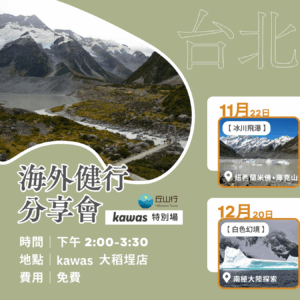 本次講座將由資深領隊與您分享基地營健行的各面向,包括路線介紹、沿途景點、行前準備、高山反應預防等。
