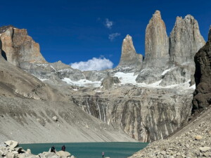 今天是整個W Trek行程的重頭戲 – 百內塔(Paine Towers)健行!我們將用一整天的時間,前往百內塔的塔基,近距離仰望無比雄偉壯麗的百內塔。路徑首先沿河谷上升,在茂密的山毛櫸森林中穿梭。最後1小時為陡升,經過冰積碎石坡, 繞過一顆大石頭之後就到達終點 – 百內塔下方的圈谷湖。坐在湖邊,靜靜仰望巨大的百內塔,內心激動不已。